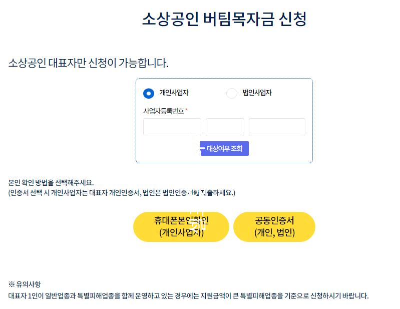 공동 대표자 사업체의 경우 2월 1일 이후, 대표자 중 1인을 정해 위임장을 첨부하여 확인지급으로 신청하셔야 합니다.