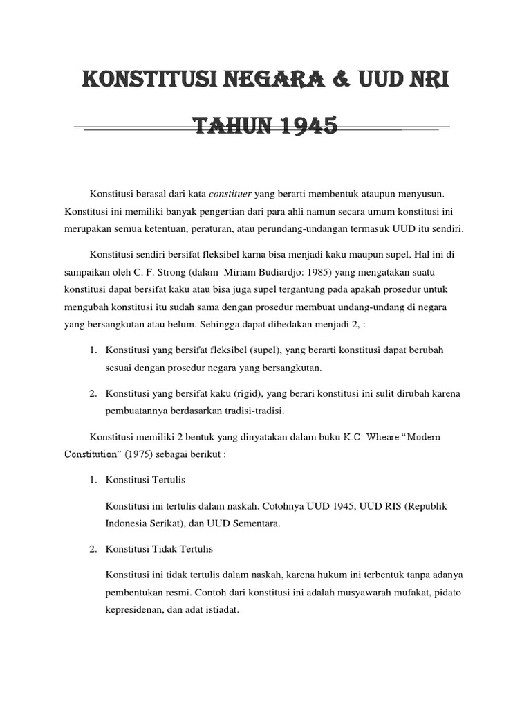 Jan 25, 2021 · uud 1945 yang merupakan konstitusi negara indonesia.